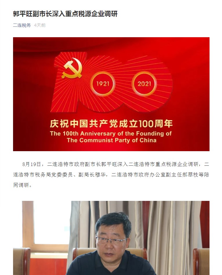 【二连浩特市副市长郭平旺】郭平旺副市长深入重点税源企业调研